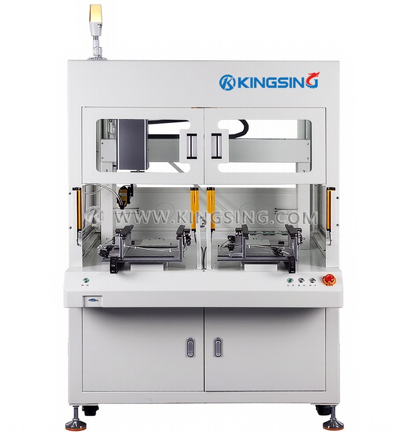 This floor-standing dual-station PCB lead cutting machine is engineered for high-efficiency electronic assembly environments, delivering superior performance in automated component lead trimming operations. The fully enclosed cabinet design with protective safety cover ensures reliable operation while preventing dust contamination, reducing noise levels, and eliminating accidental operator contact during cutting processes.